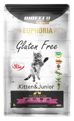 Karma dla kociąt EUPHORIA Gluten Free Cat KITTEN & JUNIOR Indyk & Królik 400 g