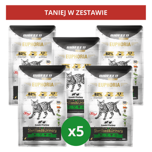 ZESTAW: Karma dla kotów EUPHORIA Gluten Free Cat STERILISED & URINARY Indyk & Jagnięcina 5x400 g