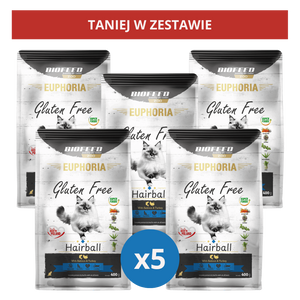 Codzienna toaleta kotów polega na lizaniu własnej sierści szorstkim językiem. Niestety prowadzi to często do jej połykania i tworzenia się w jelitach czworonoga kul włosowych. Naturalne odkłaczanie kota wspiera karma Euphoria Anti Hairball, której receptura została opracowana tak aby wspomagać wydalanie kul włosowych i ograniczać ich powstawanie. Sucha karma odkłaczająca dla kota Euphoria Anti Hairball to bezglutenowe krokiety z dodatkiem oleju z łososia dla pięknej skóry i sierści.