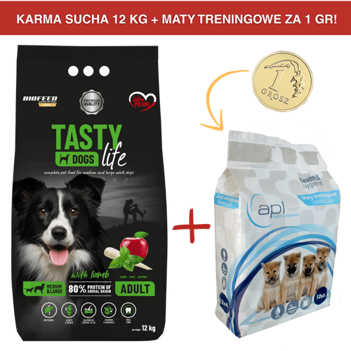 ZESTAW: Karma dla psa Tasty Dogs Life z jagnięciną 12 kg (średnie i duże rasy) + maty treningowe APL za 1 gr