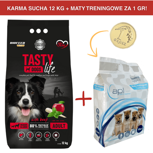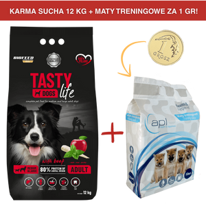 ZESTAW: Karma dla szczeniąt Tasty Dogs Life z wołowiną 12 kg (średnie i duże rasy) + maty treningowe APL za 1 gr