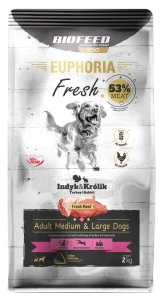 Karma dla psów EUPHORIA Fresh z indykiem i królikiem (średnie i duże rasy) 2 kg