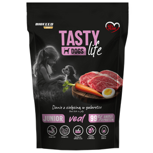 Mokra karma dla szczeniąt Tasty Dogs Life CIELĘCINA 90% - danie w galaretce (saszetka) 500 g
