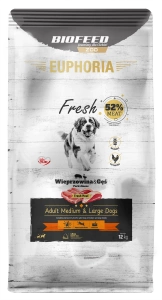 Karma dla psów EUPHORIA Fresh z wieprzowiną i gęsią (średnie i duże rasy) 12 kg