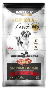 Karma dla psów EUPHORIA Fresh z wieprzowiną i wołowiną (średnie i duże rasy) 2 kg