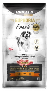 Karma dla psów EUPHORIA Fresh z wieprzowiną i gęsią (średnie i duże rasy) 12 kg