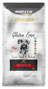 Karma dla szczeniąt EUPHORIA Gluten Free z wołowiną (małe i średnie rasy) 12 kg