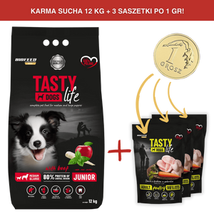Karma dla szczeniąt Tasty Dogs Life z wołowiną 12 kg (średnie i duże rasy)