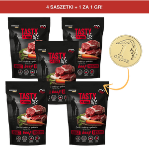 [4+1 ZA GROSZ] Mokra karma dla psów Tasty Dogs Life WOŁOWINA 90% - danie w galaretce (saszetka) 500 g