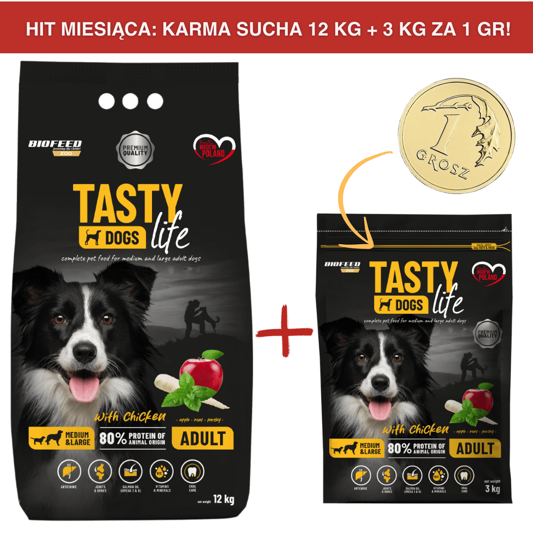 Karma dla psa Tasty Dogs Life z kurczakiem 3 kg (średnie i duże rasy)Cena: 34,99 zł / szt.