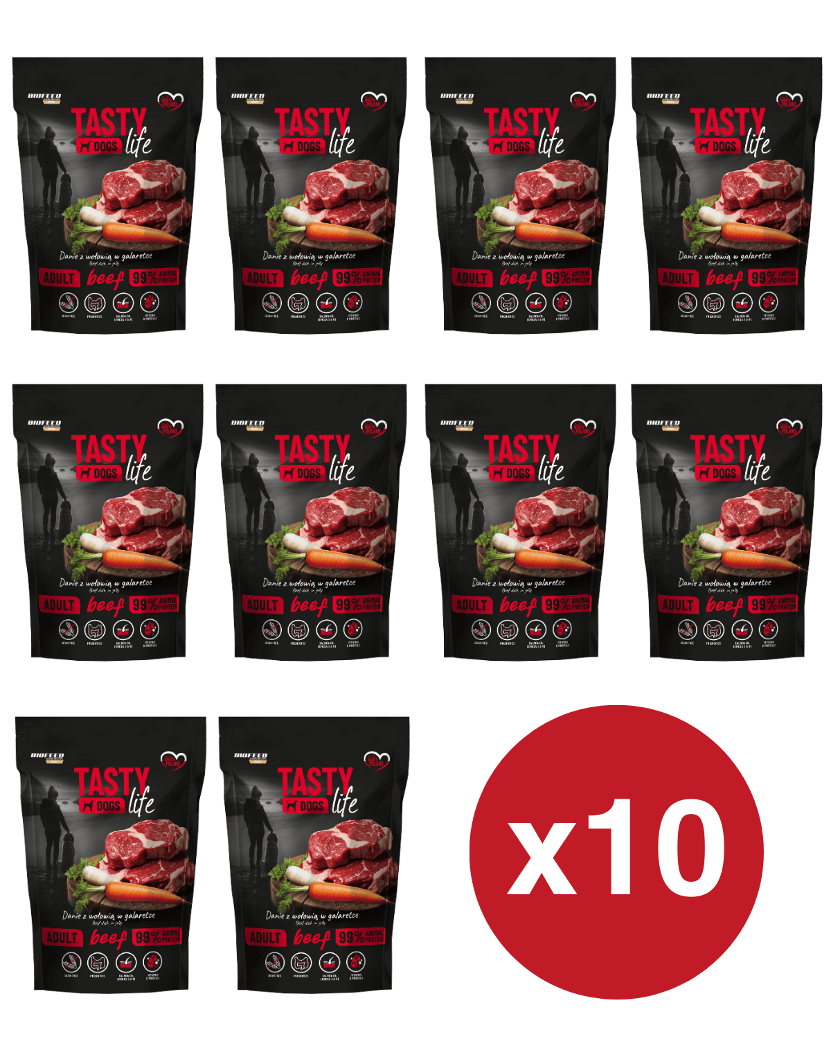 ZESTAW: Mokra karma dla psów Tasty Dogs Life WOŁOWINA 90% - danie w galaretce (saszetka) 10x 500 g