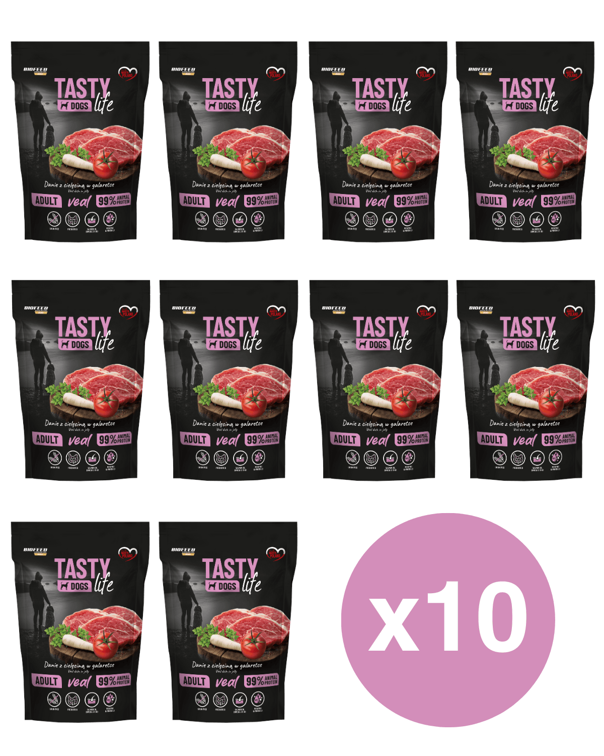 ZESTAW: TASTY DOG LIFE CIELĘCINA 90% SASZETKA 10x 500 g