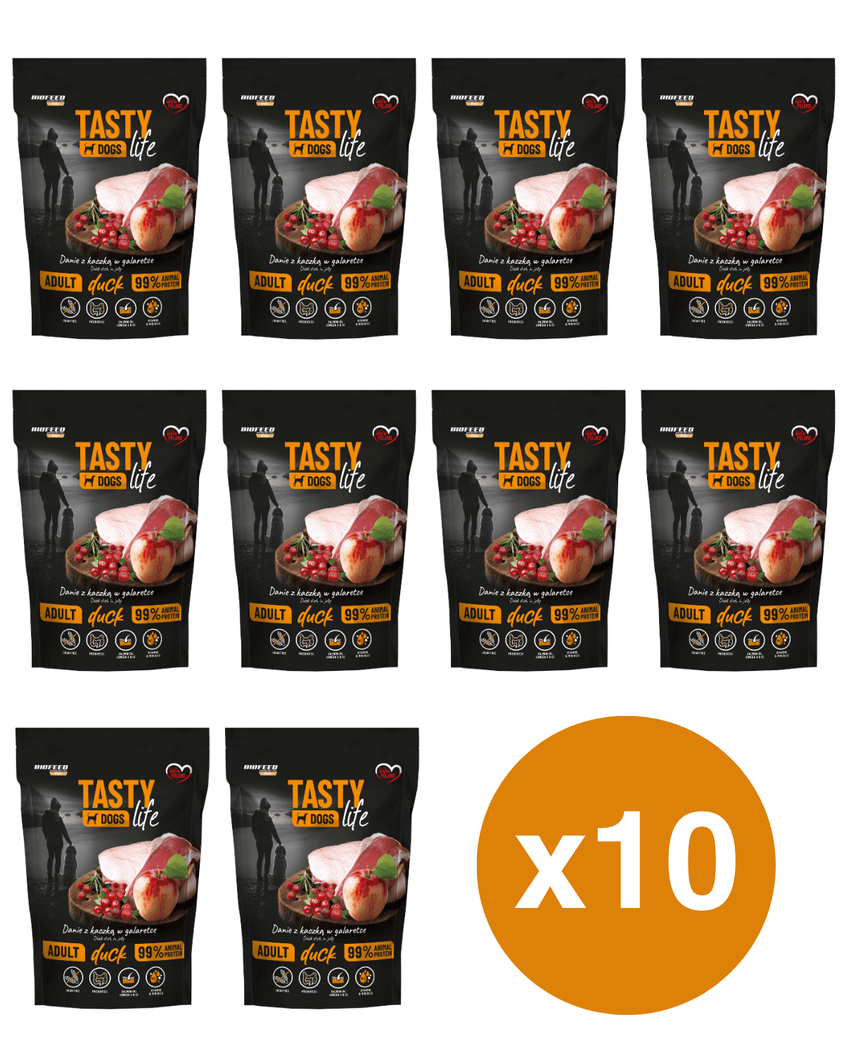 ZESTAW: Mokra karma dla psów Tasty Dogs Life KACZKA 90% - danie w galaretce (saszetka) 10x 500 g