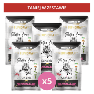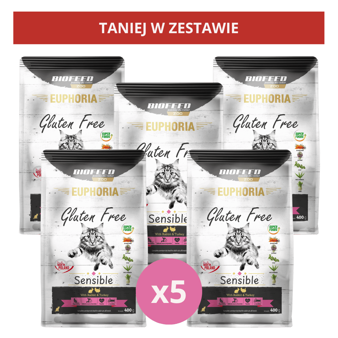 ZESTAW: Karma dla kotów EUPHORIA Gluten Free Cat SENSIBLE Indyk & Królik 5x400 g