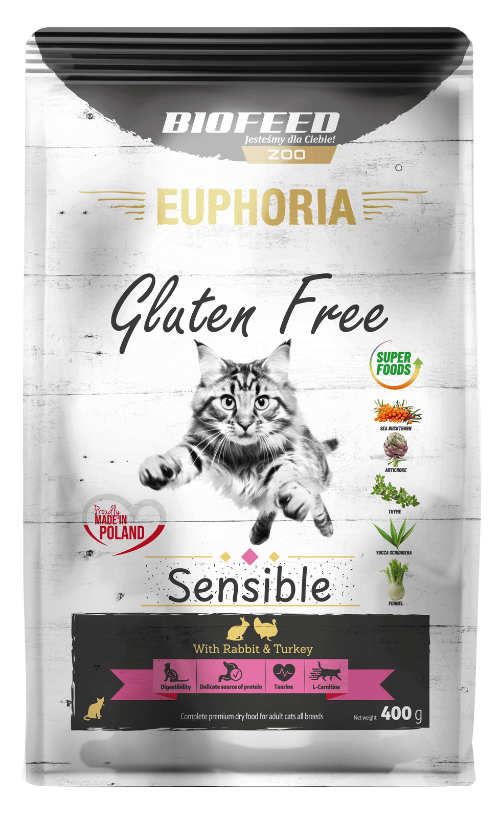 Karma dla kotów EUPHORIA Gluten Free Cat SENSIBLE Indyk & Królik 400 g