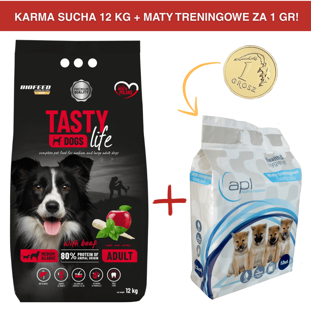 - Karma dla psa Tasty Dogs Life z wołowiną 12 kg (średnie i duże rasy)Cena: 119,99 zł / szt.