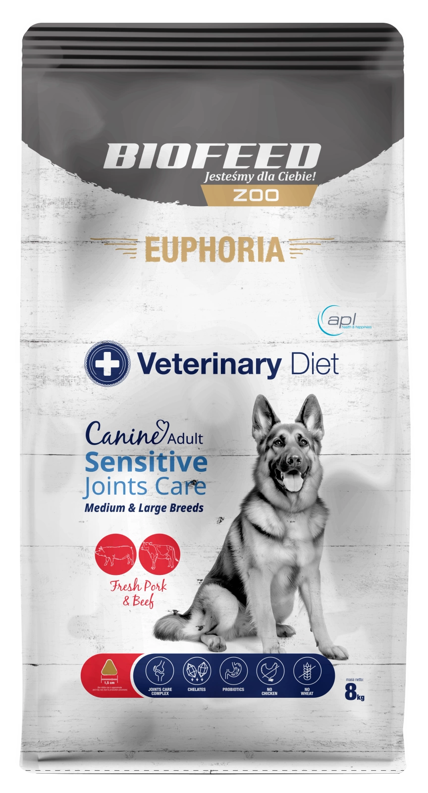 - Bez pszenicy, kukurydzy, glutenu pszenicznego, soi i cukru.