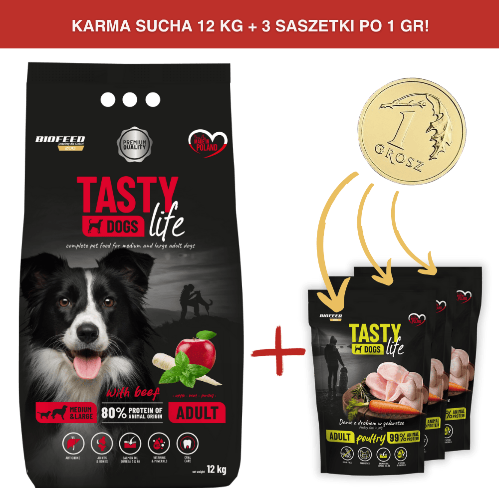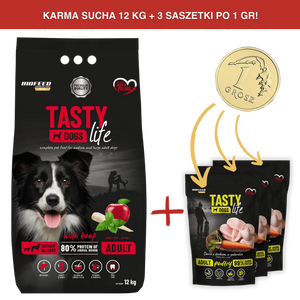 Karma dla psa Tasty Dogs Life z wołowiną 12 kg (średnie i duże rasy)Cena: 107,99 zł / szt.