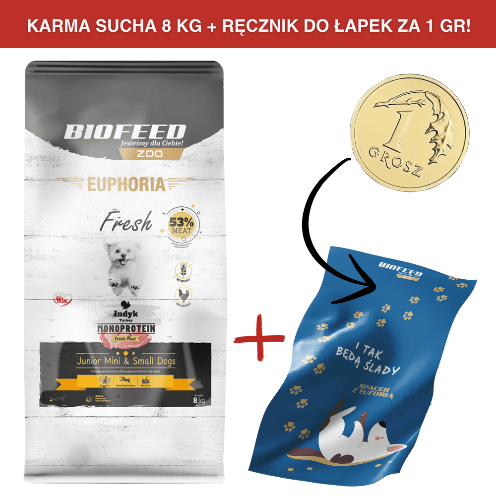 Karma dla szczeniąt EUPHORIA Fresh Turkey Monoprotein (mini i małe rasy) 8 kgCena: 149,99 zł / szt.