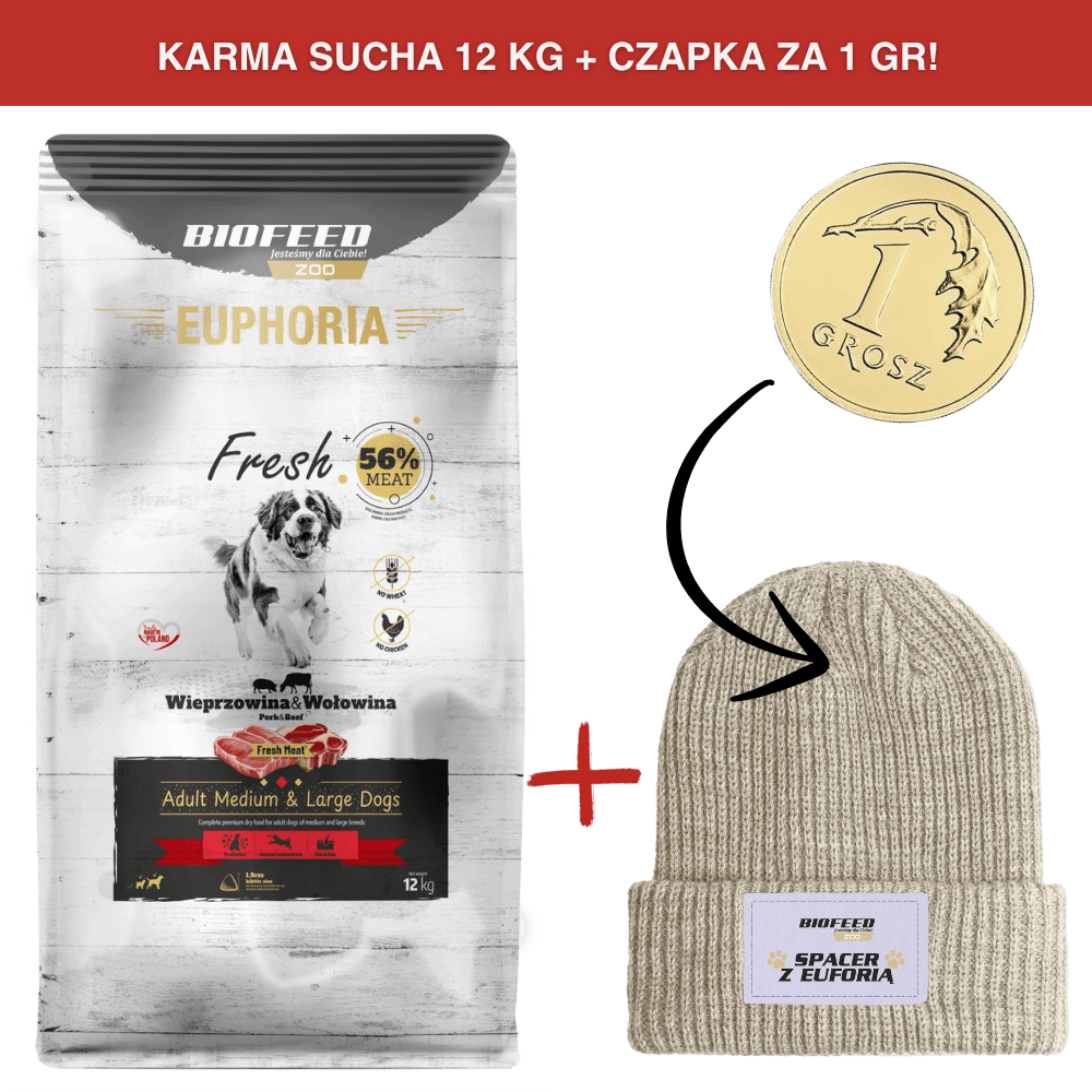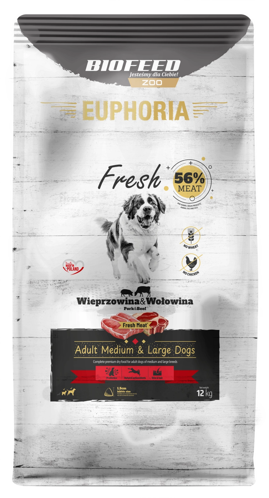 Karma dla psów EUPHORIA Fresh z wieprzowiną i wołowiną (średnie i duże rasy) 12 kg
