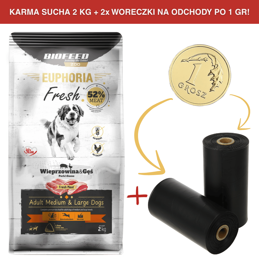 Karma dla psów EUPHORIA Fresh z wieprzowiną i gęsią (średnie i duże rasy) 2 kgCena: 39,99 zł / szt.