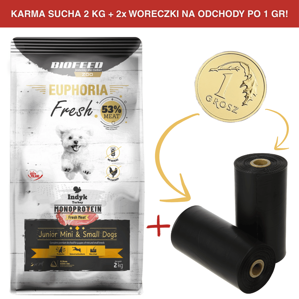 Karma dla szczeniąt EUPHORIA Fresh Turkey Monoprotein (mini i małe rasy) 2 kgCena: 49,99 zł / szt.