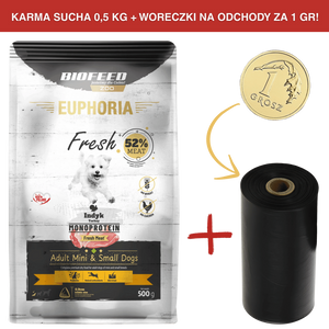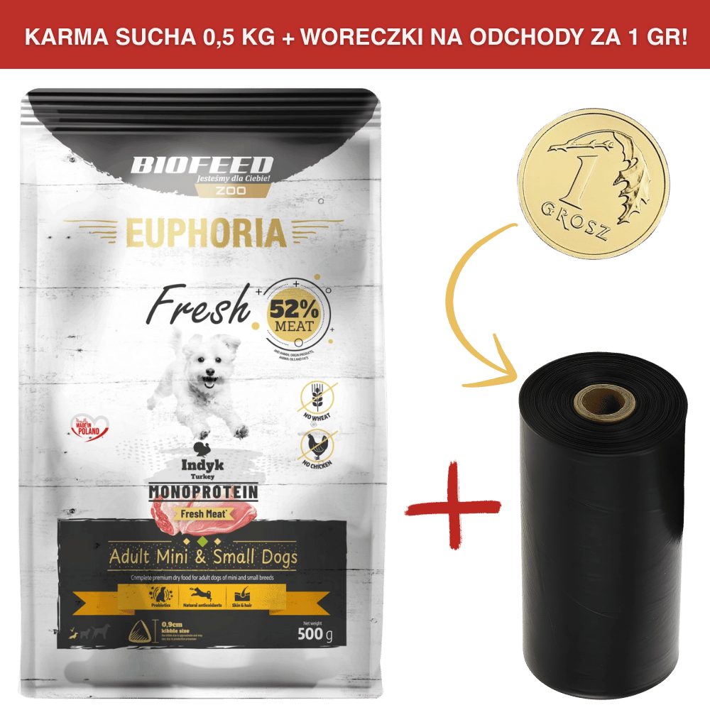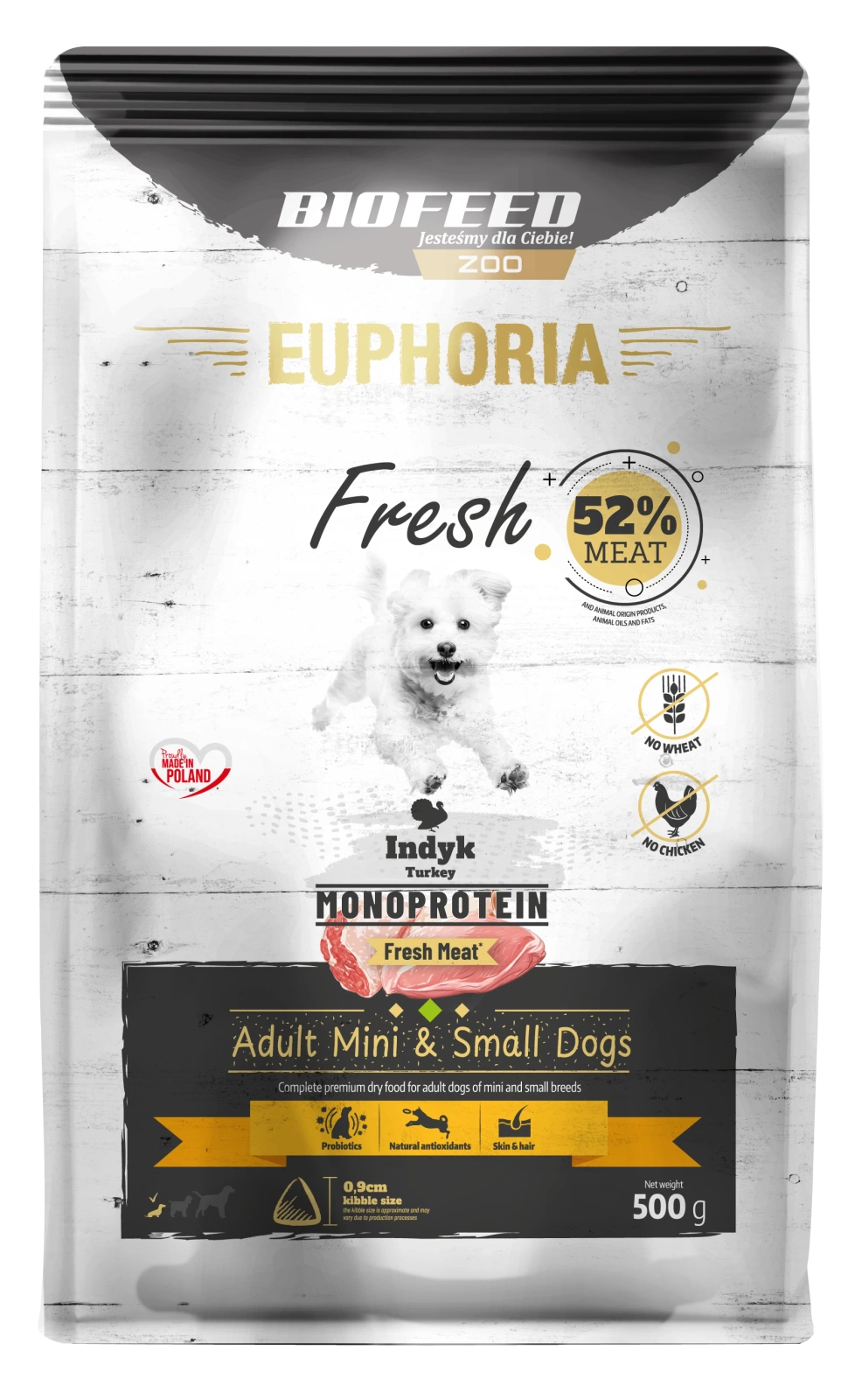 Karma dla psów EUPHORIA Fresh Turkey Monoprotein (mini i małe rasy) 0,5 kgCena: 19,99 zł / szt.
