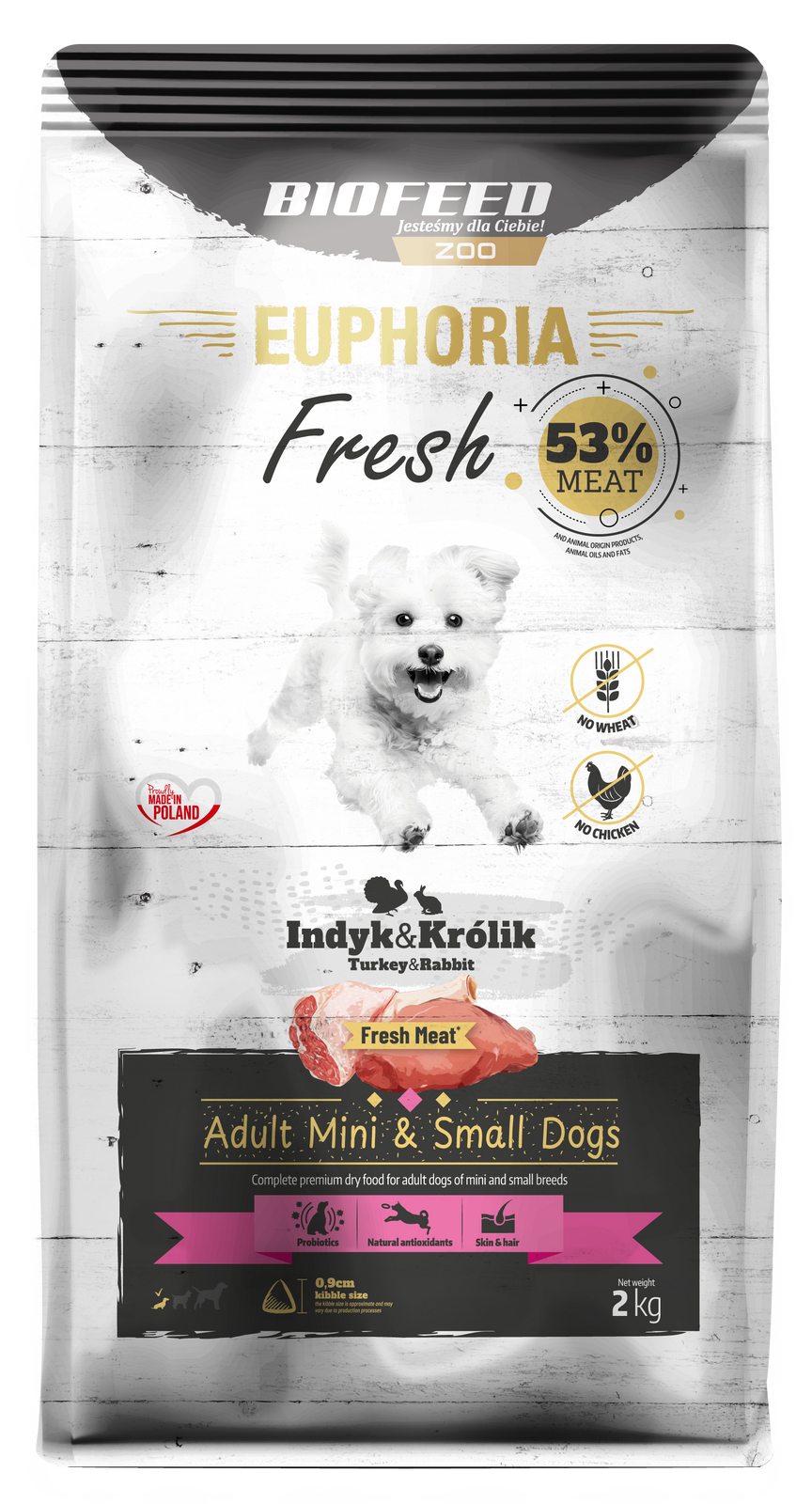 Karma dla psów EUPHORIA Fresh z indykiem i królikiem (mini i małe rasy) 2 kgCena: 49,99 zł / szt.