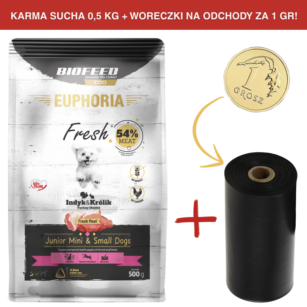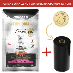 Karma dla psów EUPHORIA Fresh z indykiem i królikiem (mini i małe rasy) 0,5 kgCena: 19,99 zł / szt.