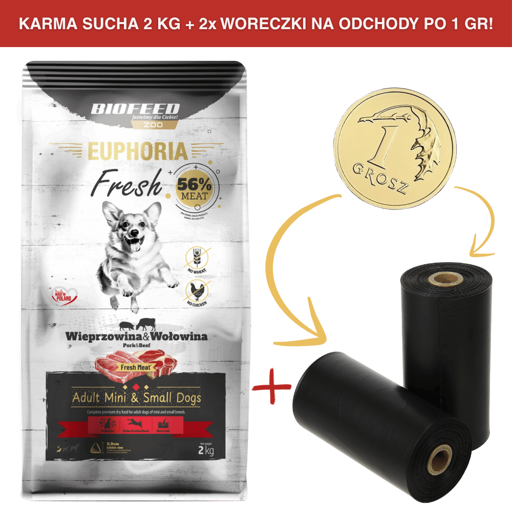 Karma dla psów EUPHORIA Fresh z wieprzowiną i wołowiną (mini i małe rasy) 2 kgCena: 39,99 zł / szt.