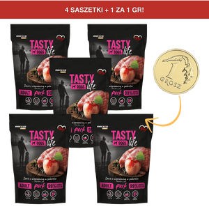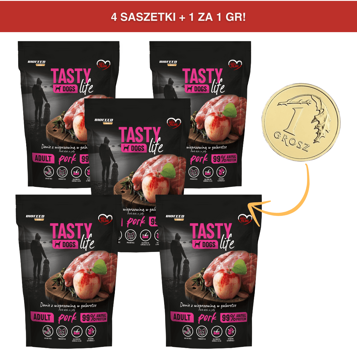[4+1 ZA GROSZ] Mokra karma dla psów Tasty Dogs Life WIEPRZOWINA 90% - danie w galaretce (saszetka) 500 g