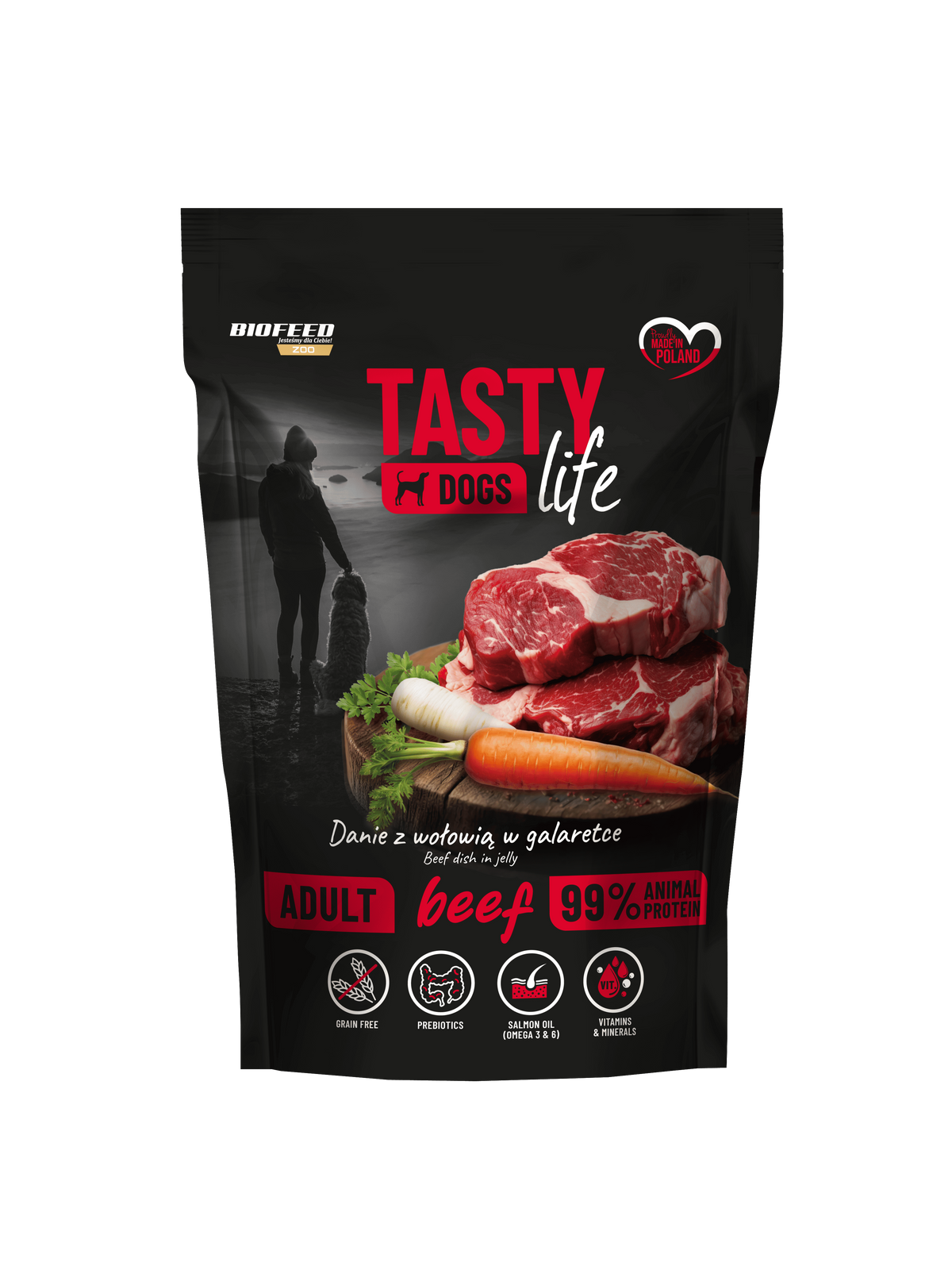 Mokra karma dla psów Tasty Dogs Life WOŁOWINA 90% - danie w galaretce (saszetka) 500 g