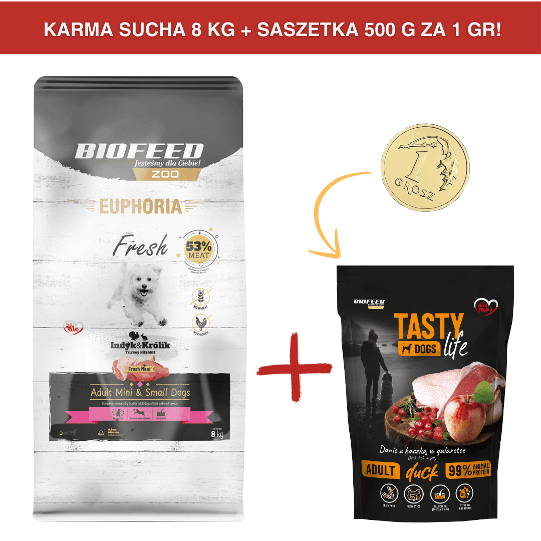 Karma dla psów EUPHORIA Fresh z indykiem i królikiem (mini i małe rasy) 8 kgCena: 139,99 zł / szt.