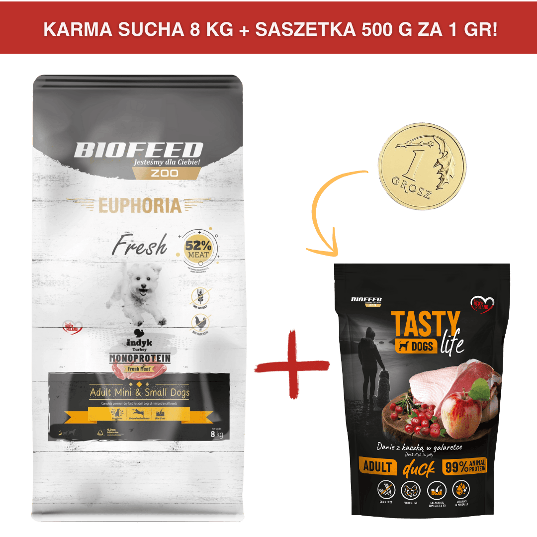 Karma dla psów EUPHORIA Fresh Turkey Monoprotein (mini i małe rasy) 8 kgCena: 139,99 zł / szt.