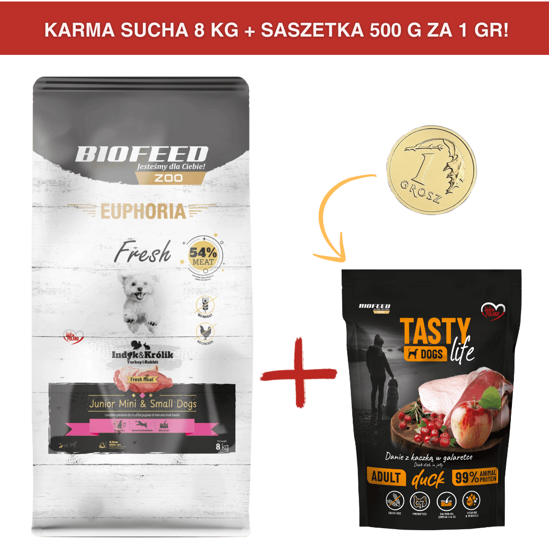 Karma dla szczeniąt EUPHORIA Fresh z indykiem i królikiem (mini i małe rasy) 8 kgCena: 149,99 zł / szt.