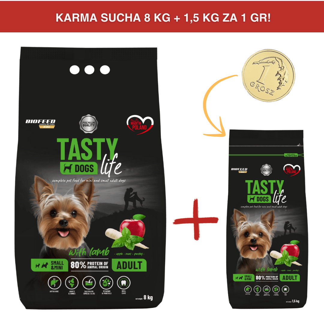 Karma dla psa Tasty Dogs Life z jagnięciną 8 kg (mini i małe rasy)Cena: 79,98 zł / szt.