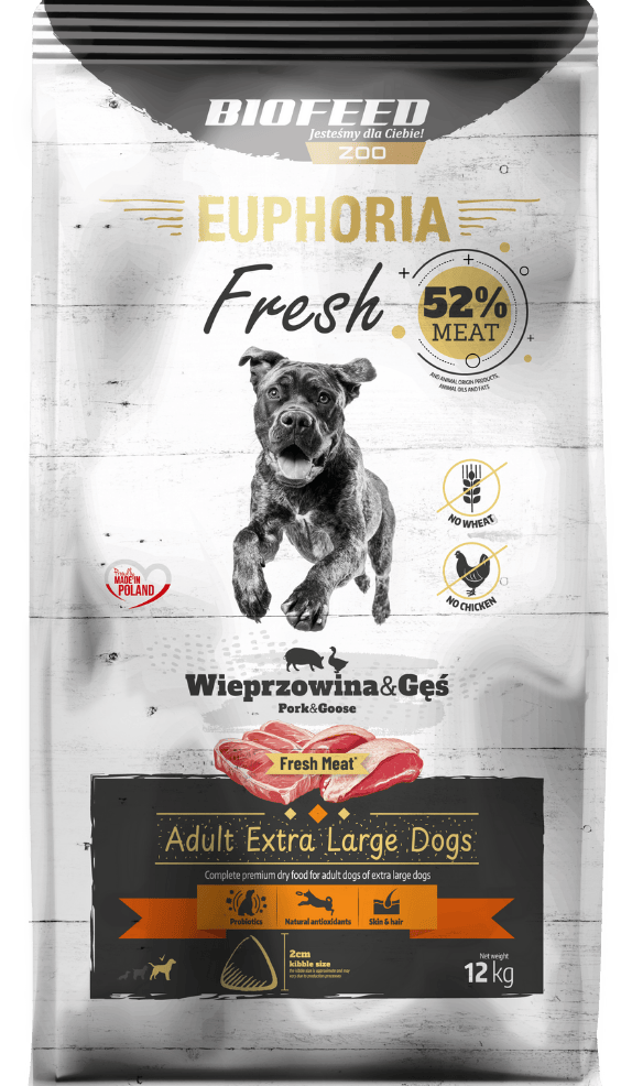 Karma dla psów EUPHORIA Fresh z wieprzowiną i gęsią (rasy bardzo duże i olbrzymie) 12 kg