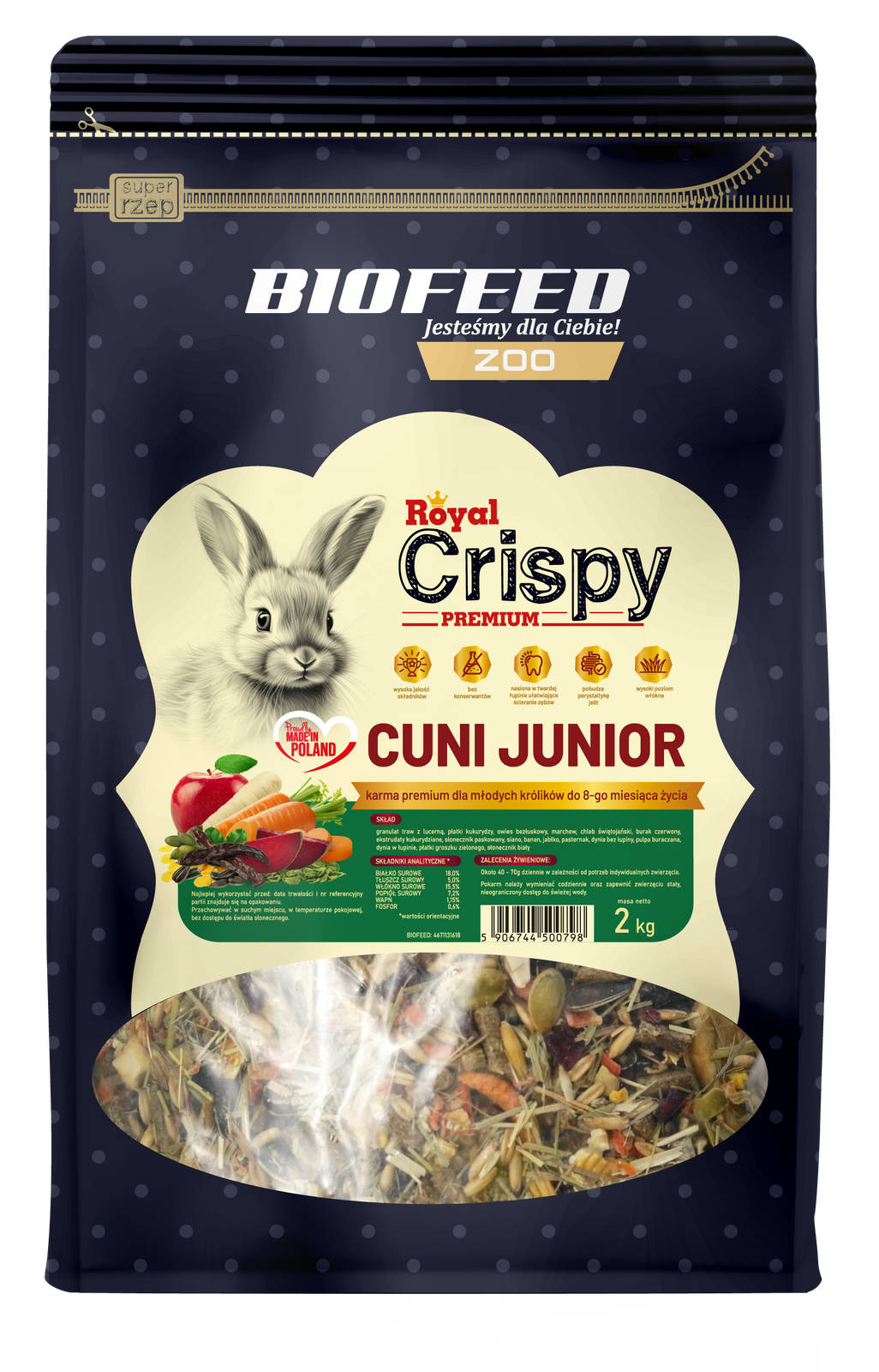 Pełnowartościowa karma premium dla wszystkich młodych królików poniżej 8-go miesiąca życia. Kompozycja starannie dobranych składników odpowiada na potrzeby najmłodszych królików i dostarcza im składniki odżywcze do prawidłowego rozwoju.