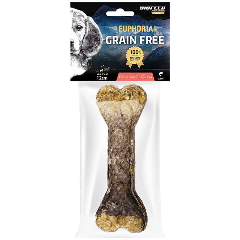 Kość dla psa w skórze łososia 12 cm